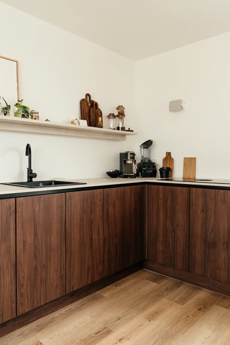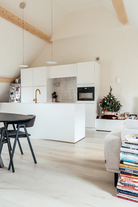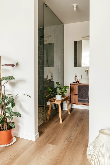 Dobrze przeczytałeś/-aś: mimo że ma już na swoim koncie prawie sto projektów renowacyjnych, Bert zawsze dąży do osiągnięcia wyjątkowego rezultatu. Bert: „Oczywiście nie zawsze zaczynam od zera. Mam stały zespół i niezawodnych dostawców określonych materiałów, w tym Lamett produkujący parkiet i panele winylowe na zatrzask. Obecnie umieszczam Parquetvinyl w prawie wszystkich mniejszych jednostkach, ponieważ jego jakość i łatwość użytkowania są bezkonkurencyjne. Dzięki pięknej strukturze drewna różnica w porównaniu z prawdziwym parkietem jest niemal niezauważalna. Co więcej, potencjalni nabywcy często komplementują mnie za „piękny parkiet", mimo że to nie jest parkiet!