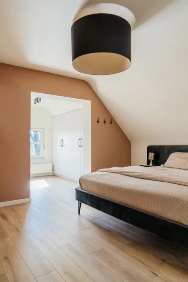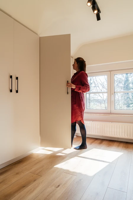 Lore i Bart podpisali akt własności domu pod koniec 2020 roku i natychmiast wprowadzili się do niego. Mimo że dom nie wyglądał tak jak teraz: był ciemny, było w nim dużo małych pokoi, staromodna podłoga wyłożona płytkami… Dzięki kilku sprytnym zmianom mogą teraz optymalnie cieszyć się pięknym światłem i otwartą przestrzenią. „Zburzyliśmy kilka ścian i w całym domu położyliśmy podłogę Parquetvinyl. Na parterze i na piętrze. Dzięki temu nasz dom wygląda na dużo większy”.